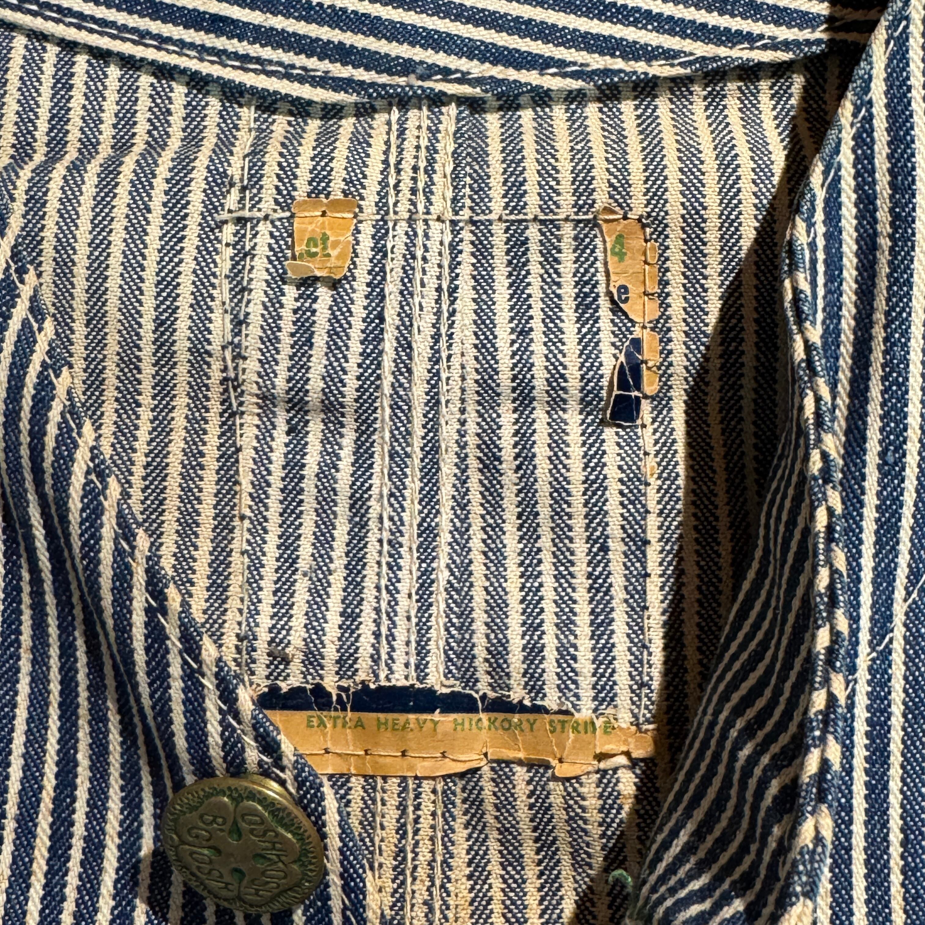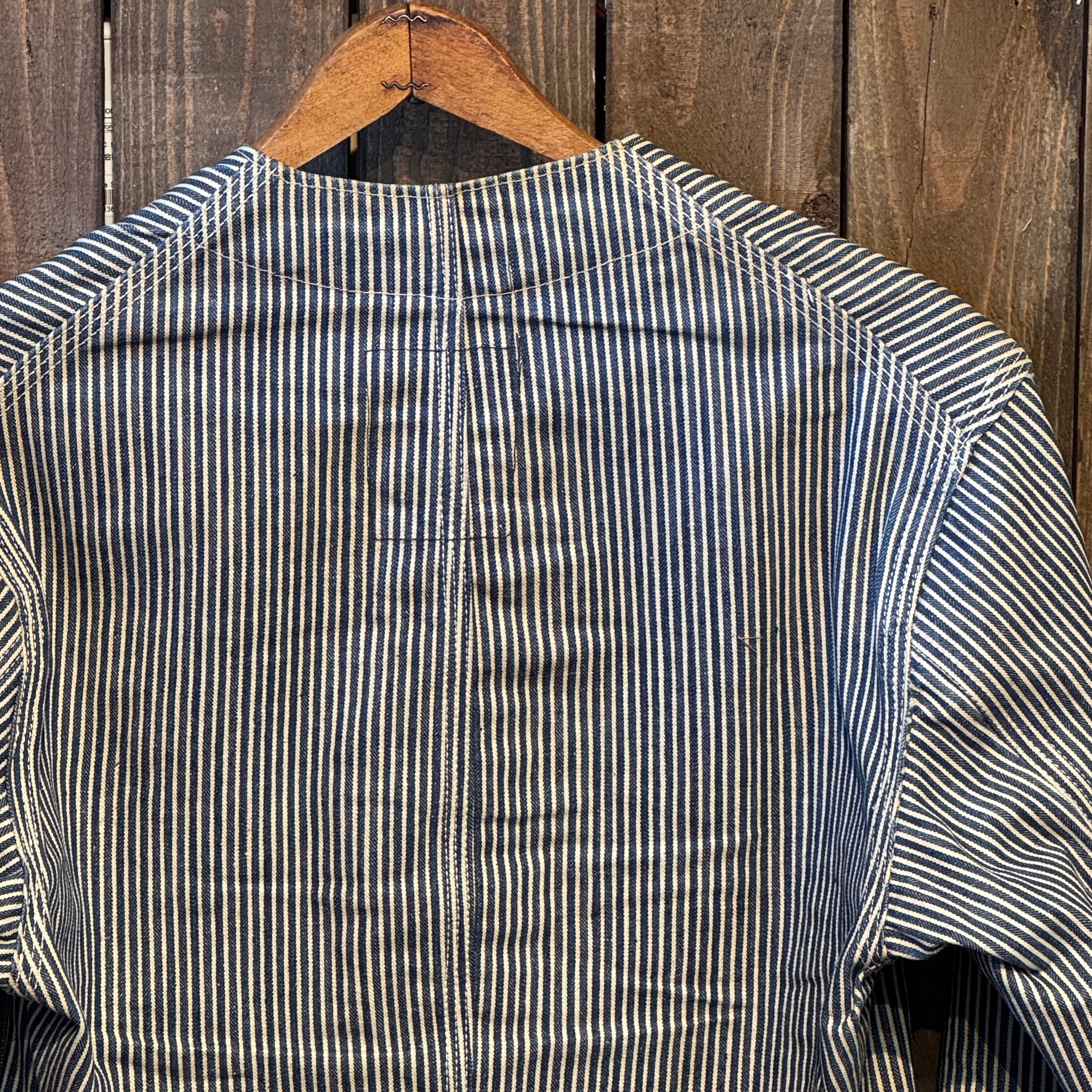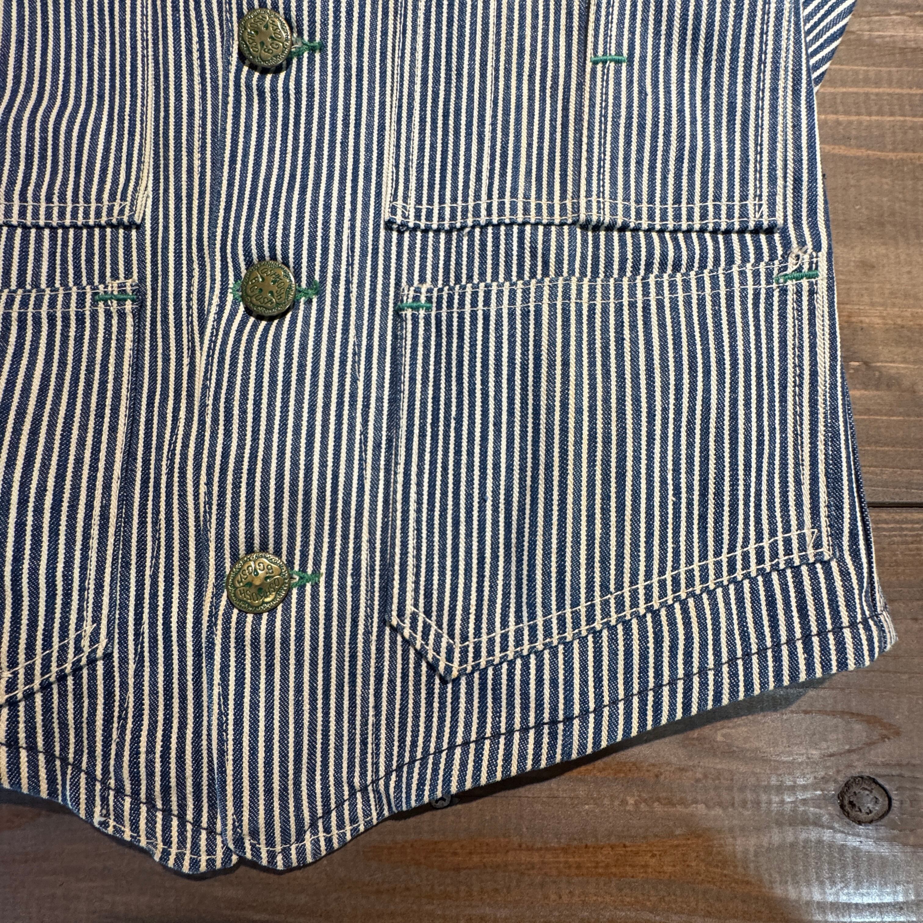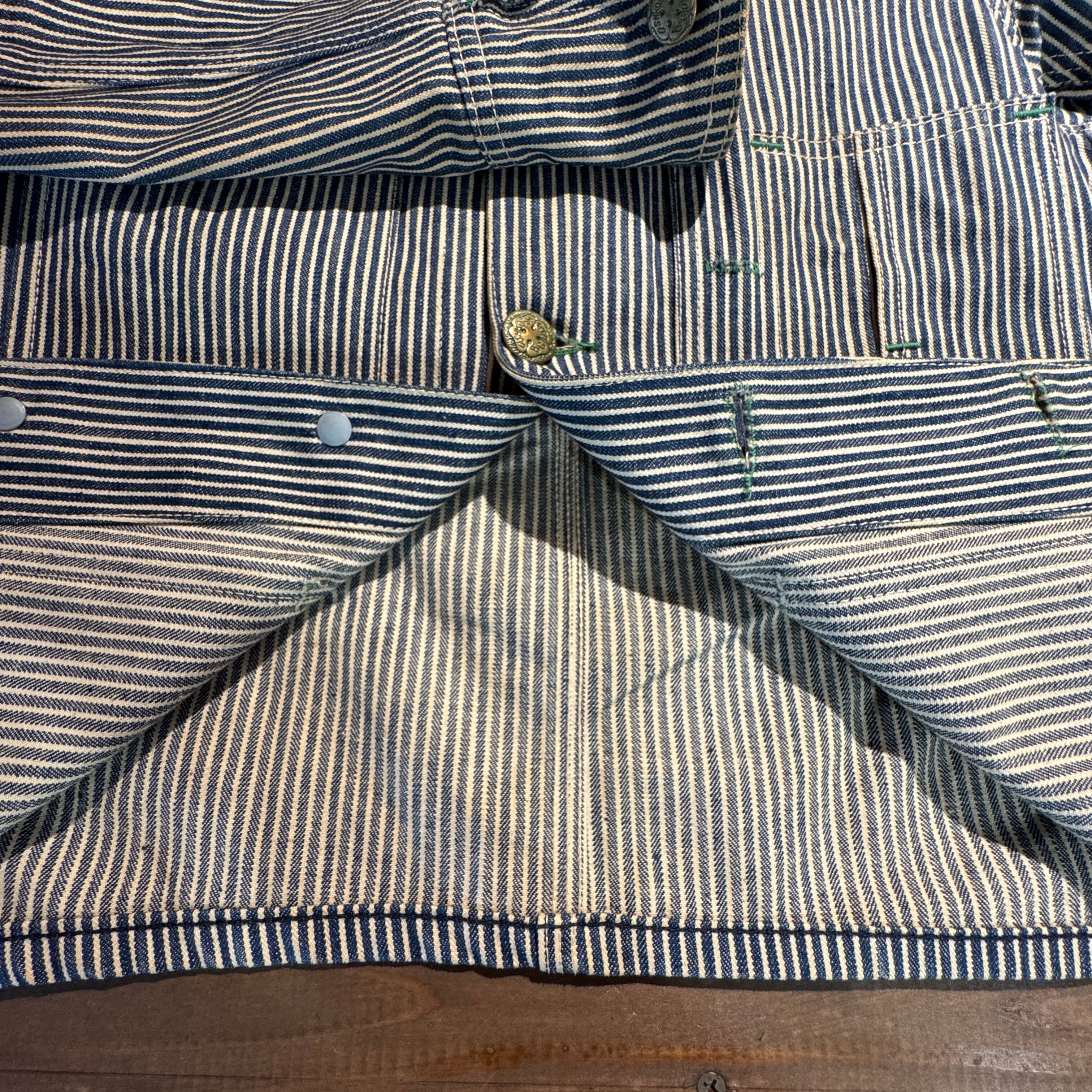 1940's〜50's VINTAGE OSHKOSH B'GOSH HICKORY STRIPE ENGINEER JACKET 【サイズ表記 34】/ 1940年代~50年代 ヴィンテージ オシュコシュ ビゴッシュ ヒッコリーストライプ エンジニアジャケット 【着画有り】