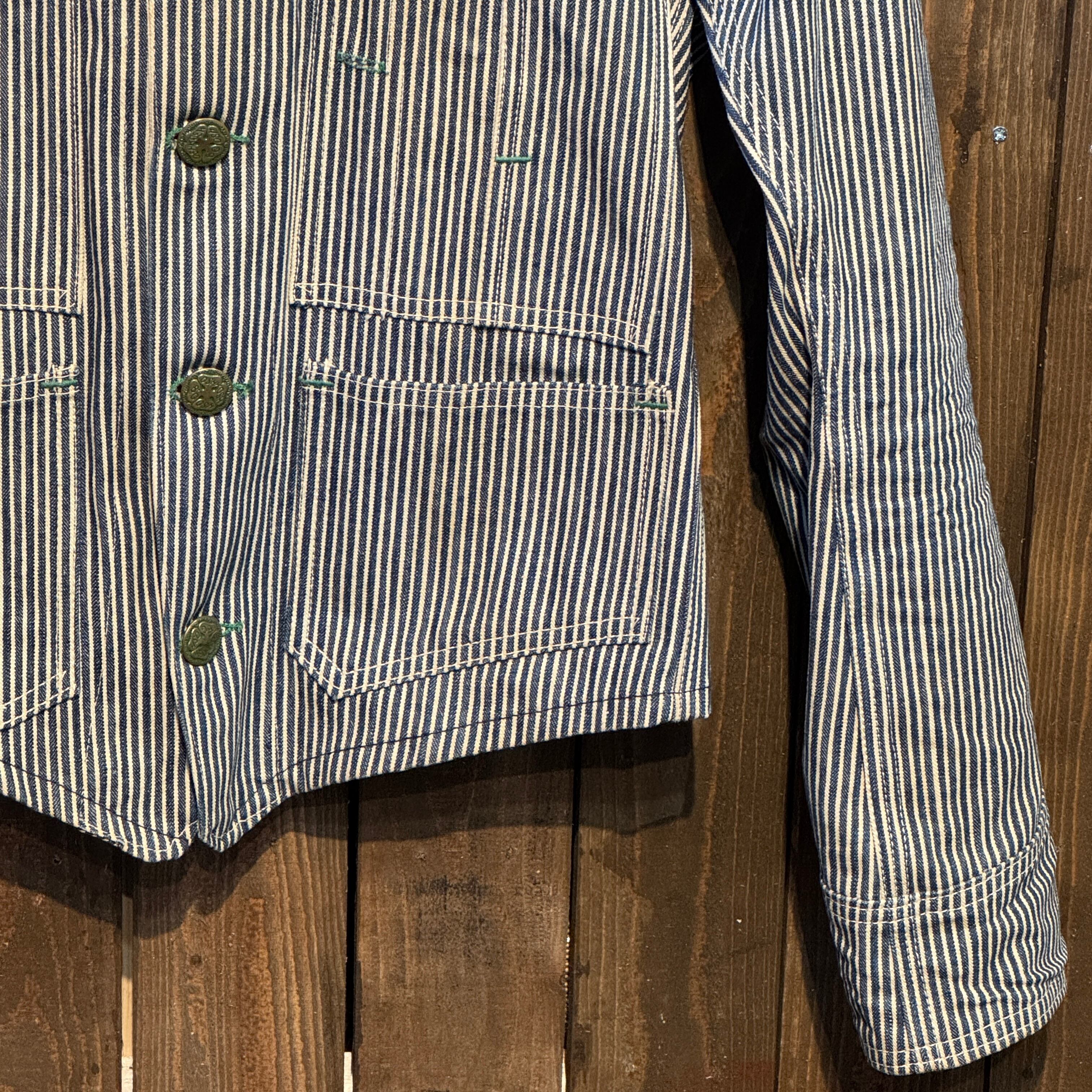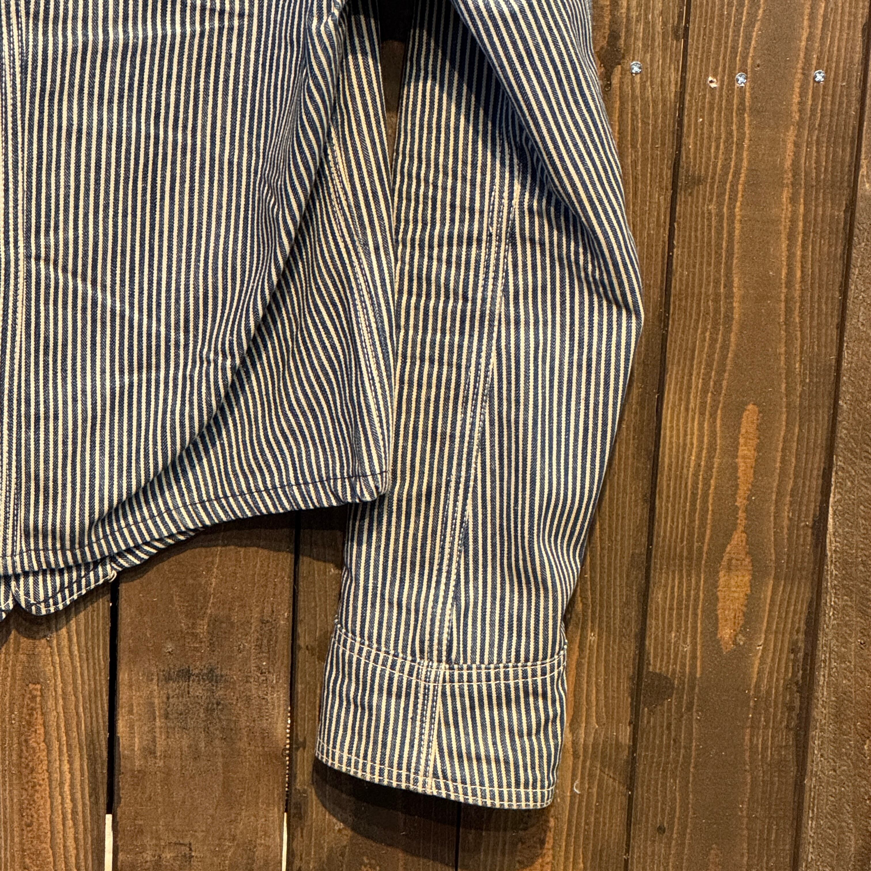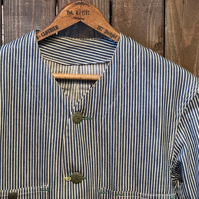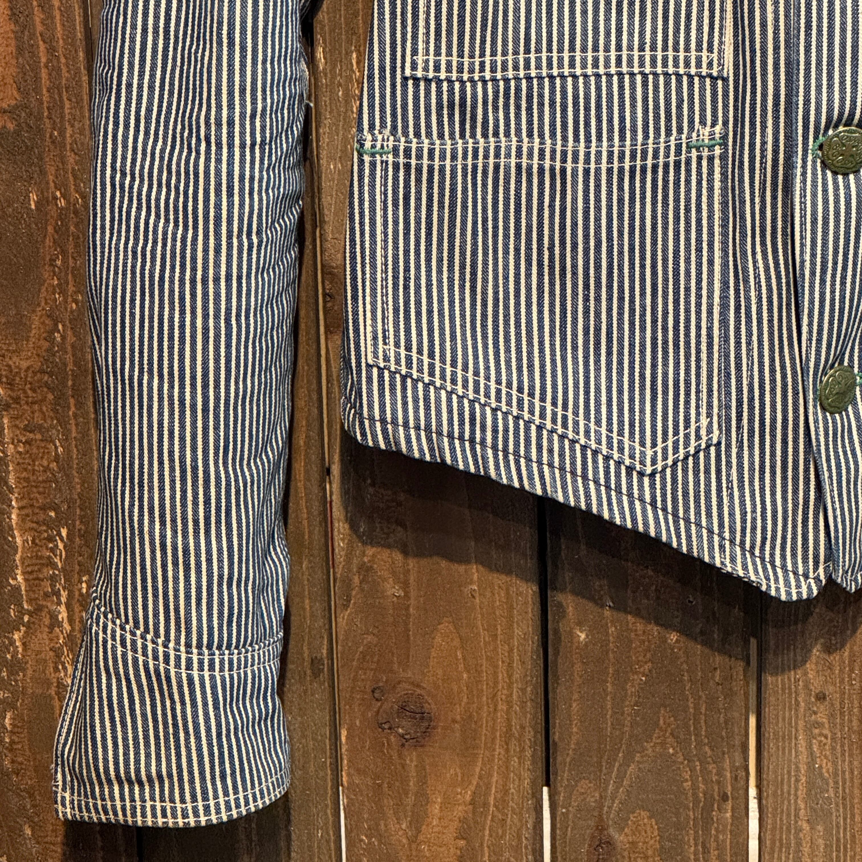 1940's〜50's VINTAGE OSHKOSH B'GOSH HICKORY STRIPE ENGINEER JACKET 【サイズ表記 34】/ 1940年代~50年代 ヴィンテージ オシュコシュ ビゴッシュ ヒッコリーストライプ エンジニアジャケット 【着画有り】