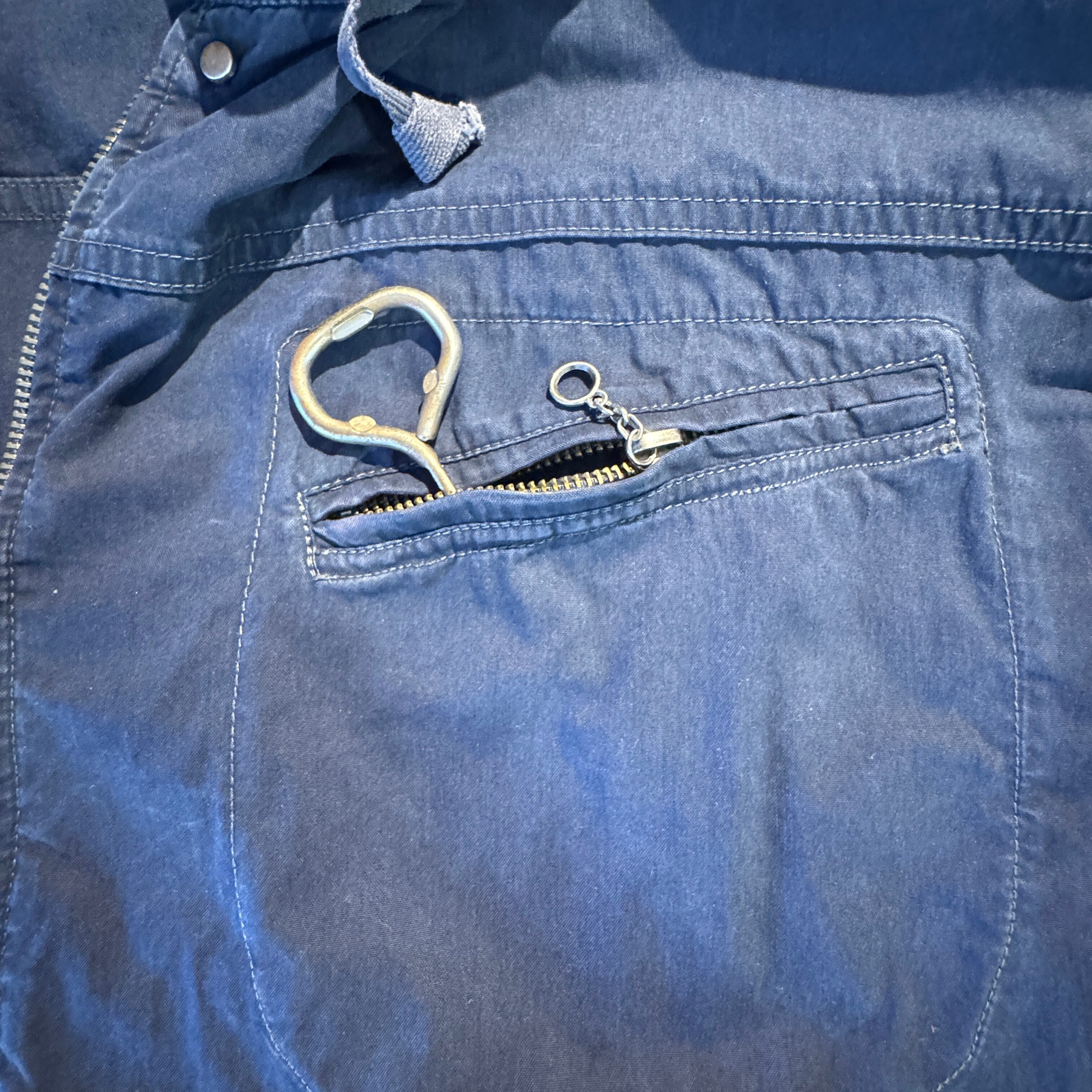 フロントファスナーはタロンのダブルジップタイプ、胸ポケットのファスナーはYKKになります。