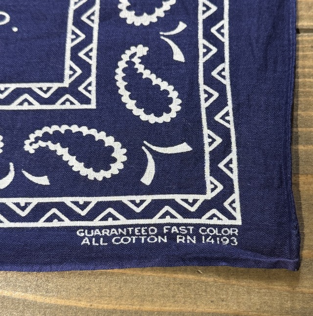 1960's~ RARE VINTAGE BANDANA NAVY PAISLEY PATTERN MADE IN USA / 1960年代~ ヴィンテージ バンダナ ネイビー ペイズリー 版抜け アメリカ製 (1)