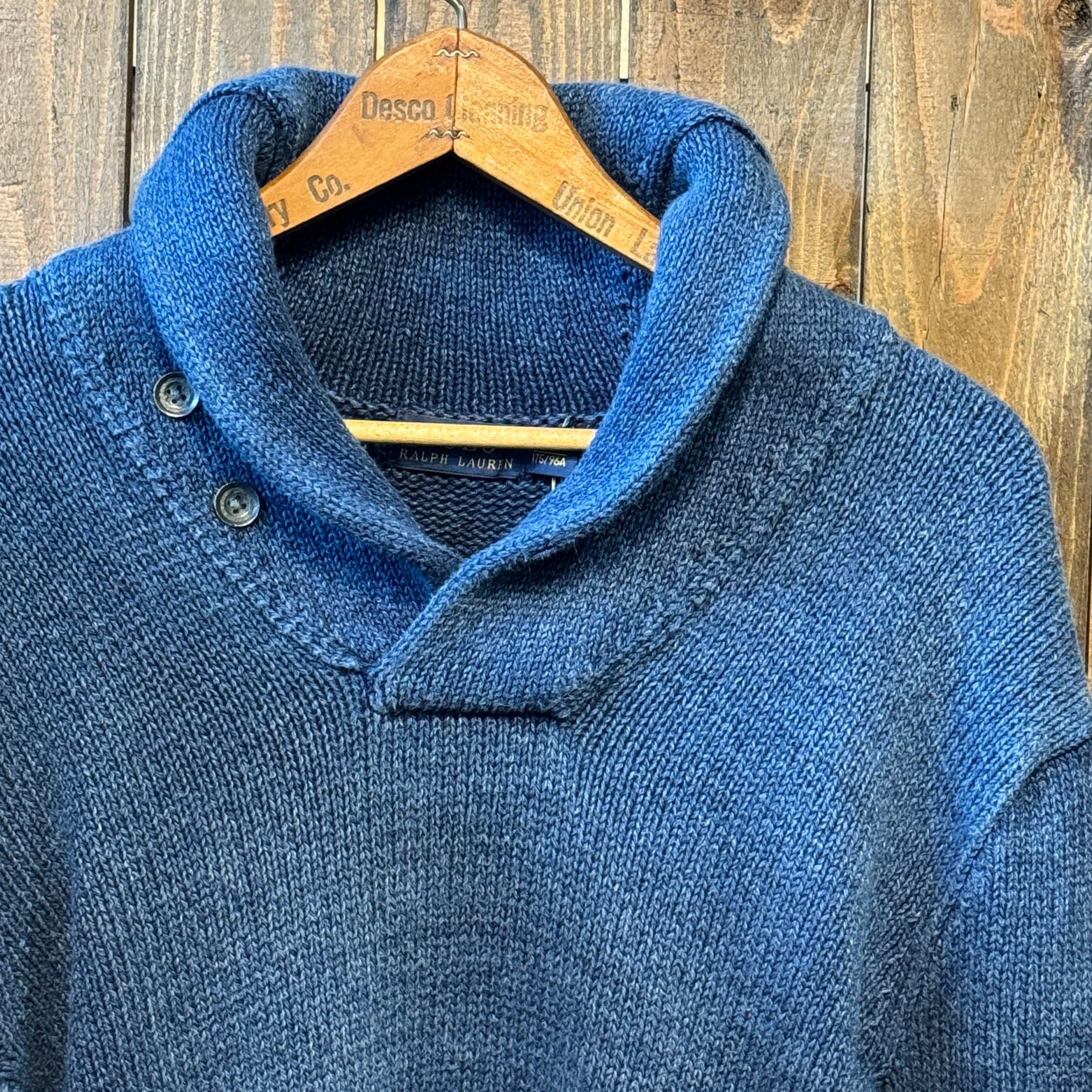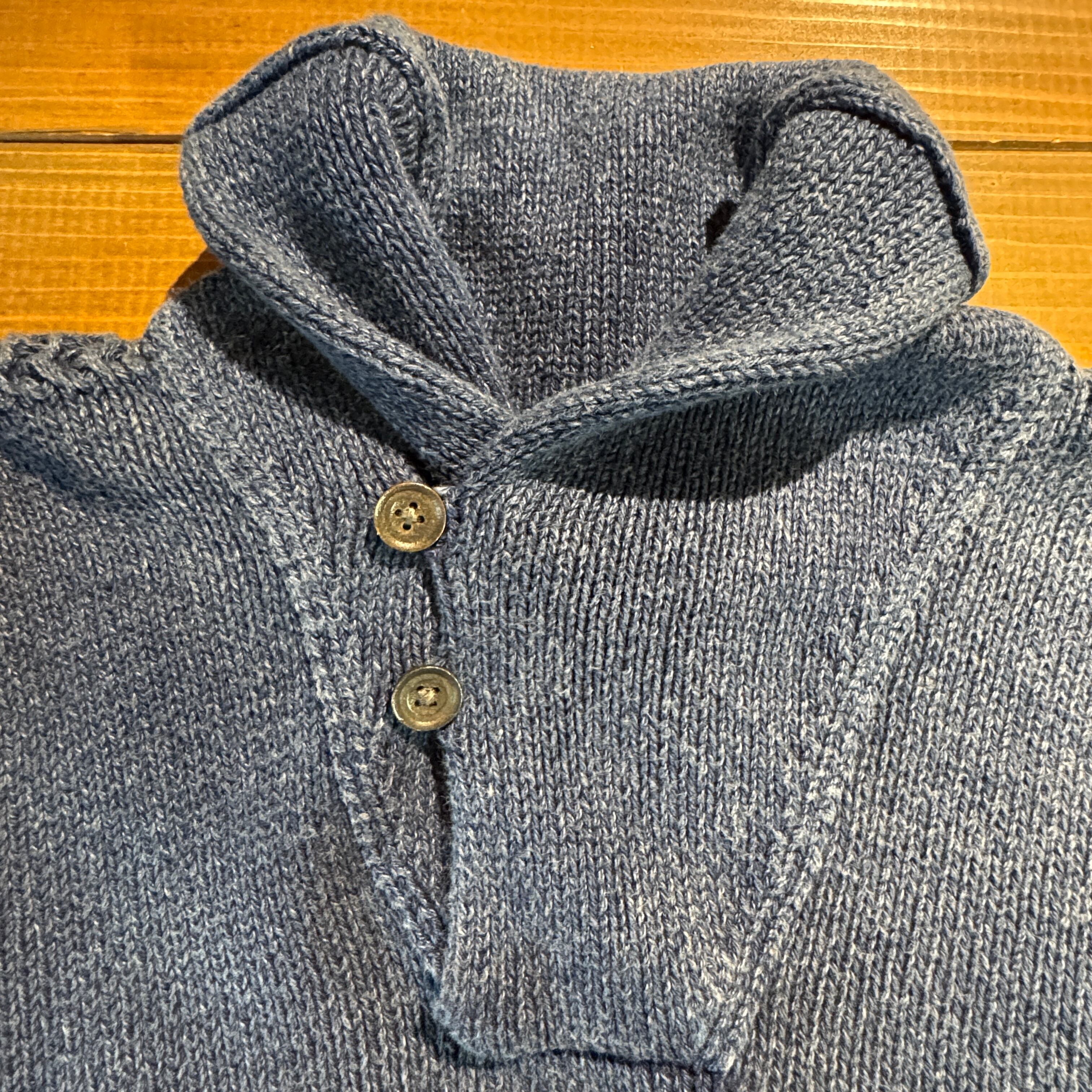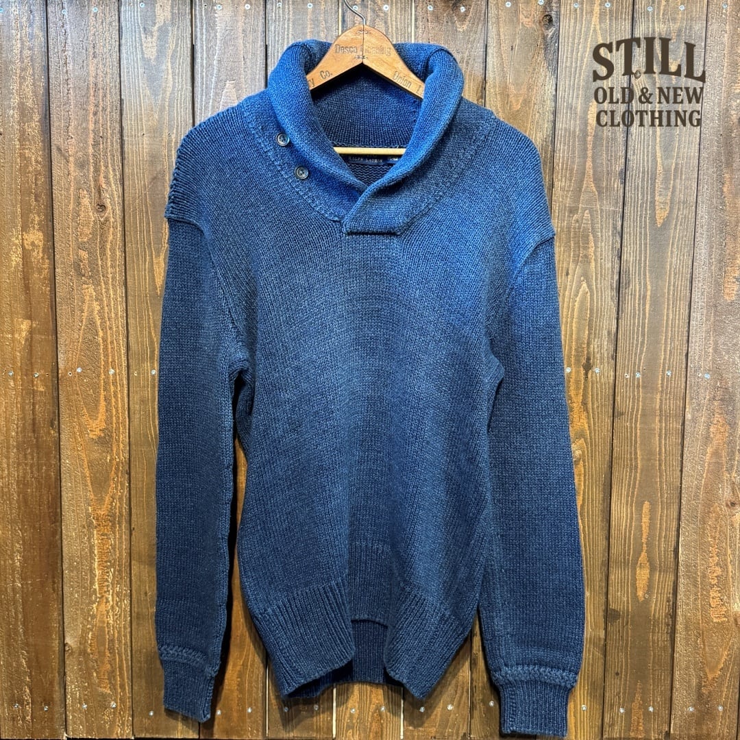2000's~ POLO Ralph Lauren INDIGO COTTON SHAWL COLLAR SWEATER【サイズ表記 M】 / 2000年代~ ポロ ラルフローレン インディゴコットン ショールカラー セーター【着画有り】