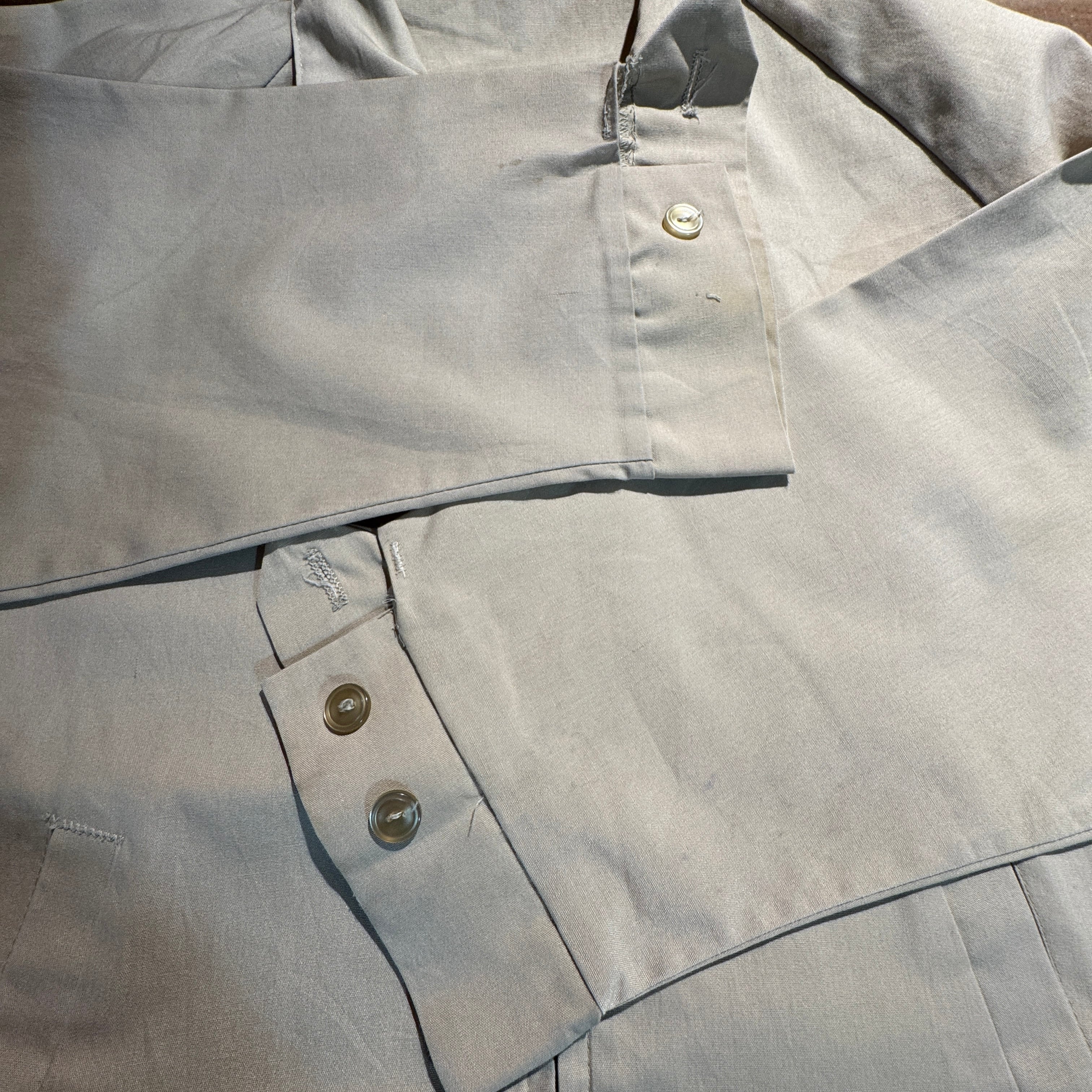 襟に汚れ箇所。右袖ボタン1個欠損。その他、わずかに汚れ箇所がございますが、比較的きれいな方だと思います。