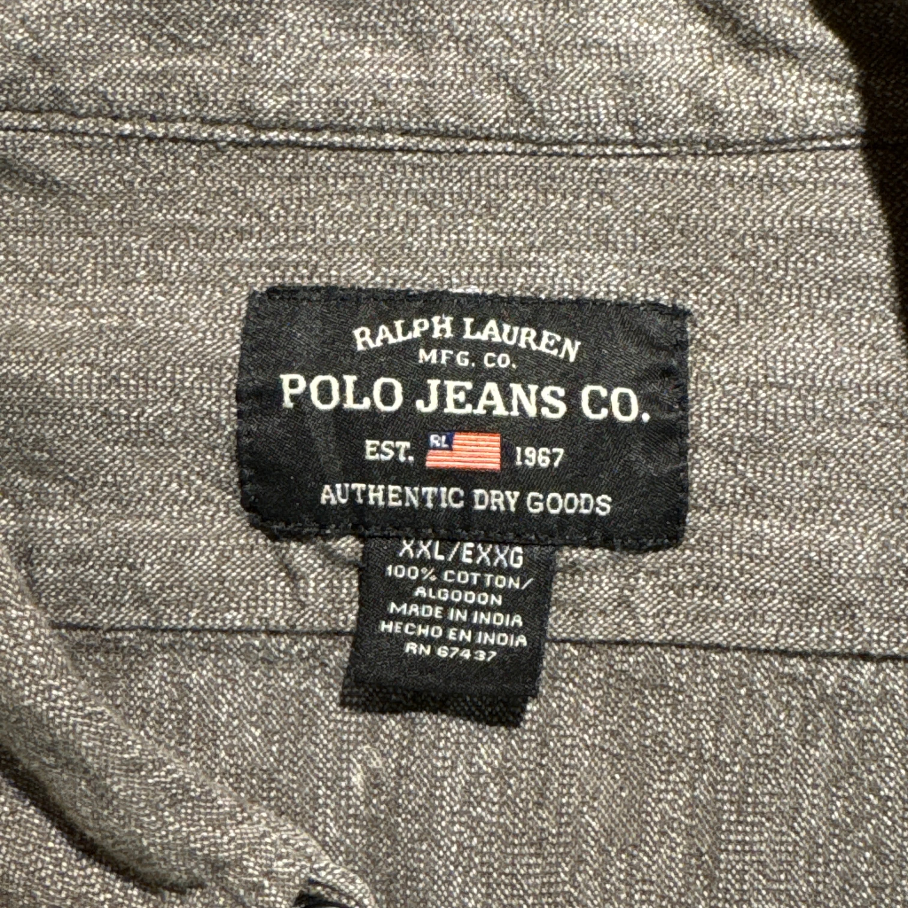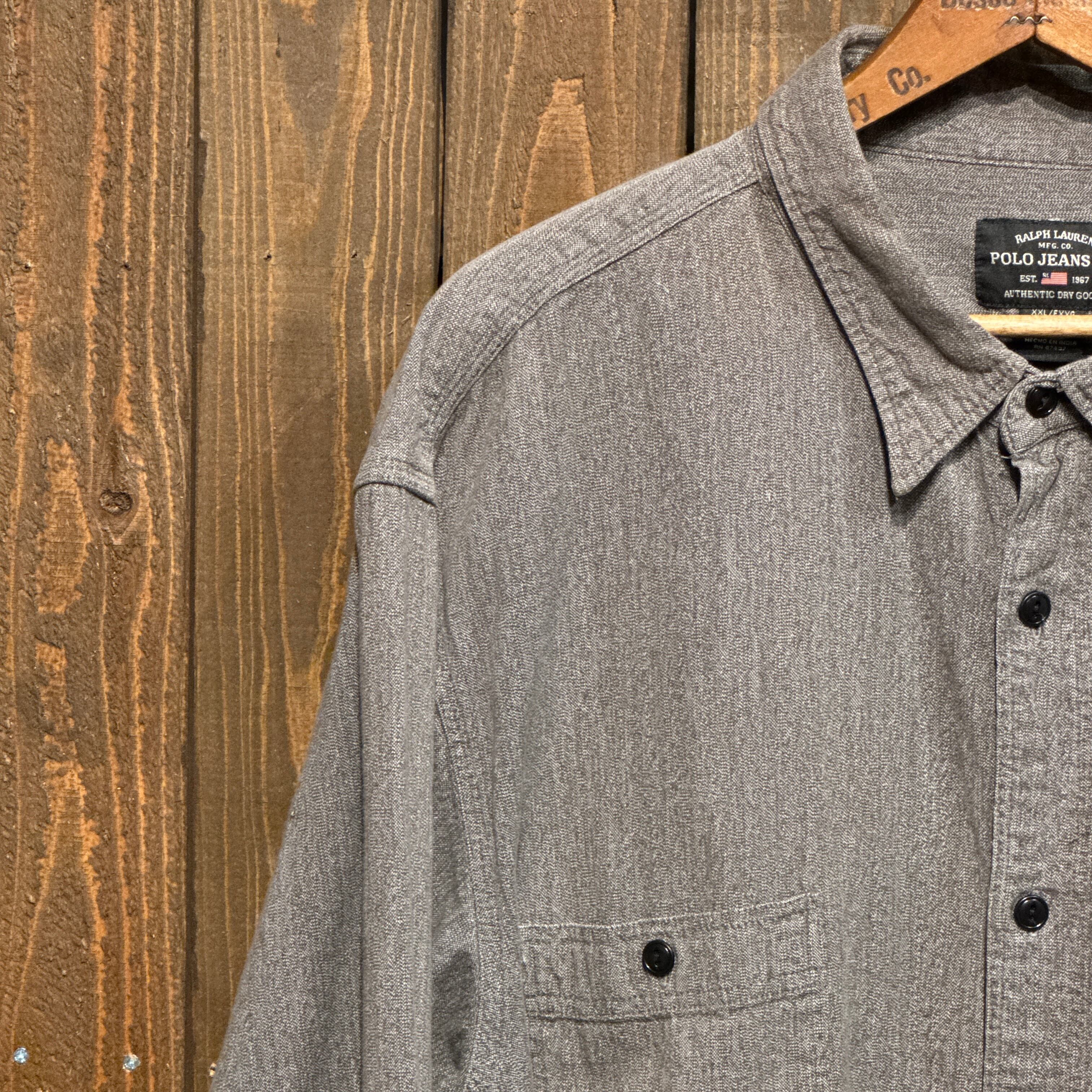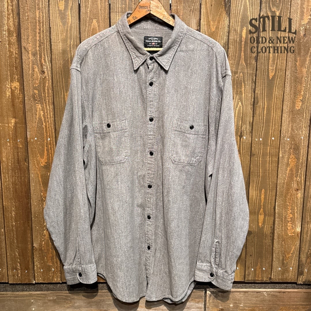 1990's~ POLO JEANS LONG SLEEVE BLACK CHAMBRAY SHIRT SUPER BIG SIZE【サイズ表記 XXL】 / 1990年代~ ポロ ジーンズ 長袖 ブラックシャンブレー シャツ 【着画有り】