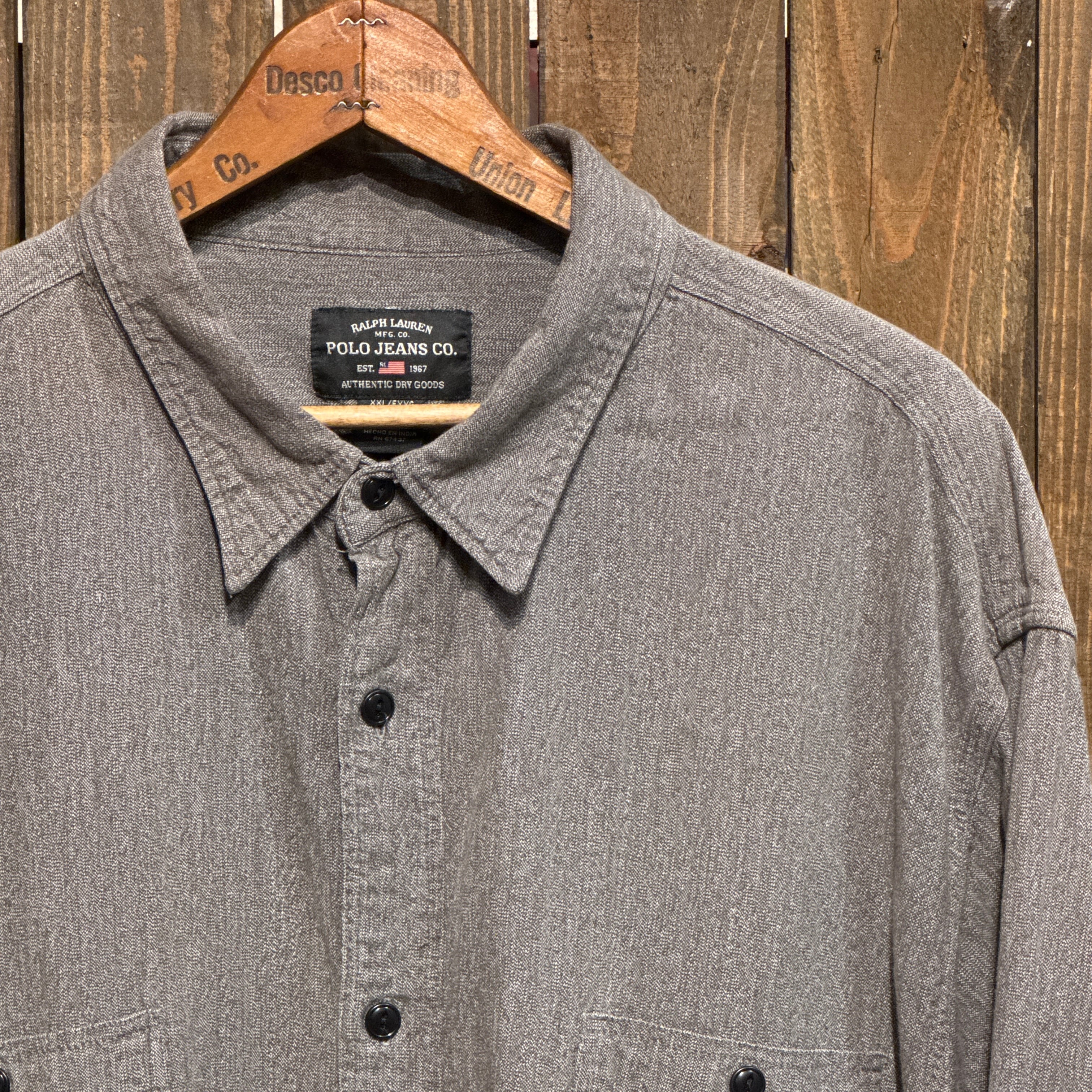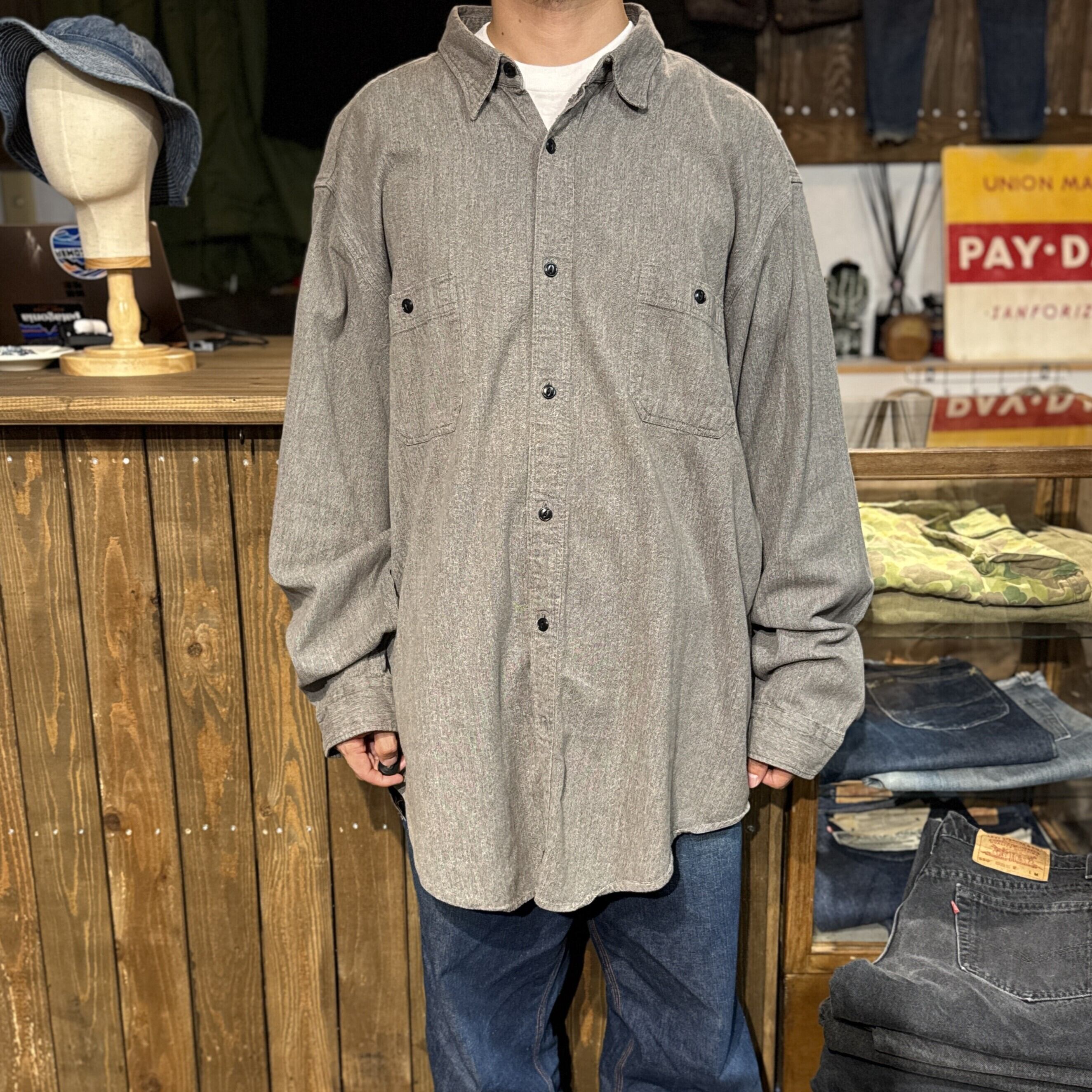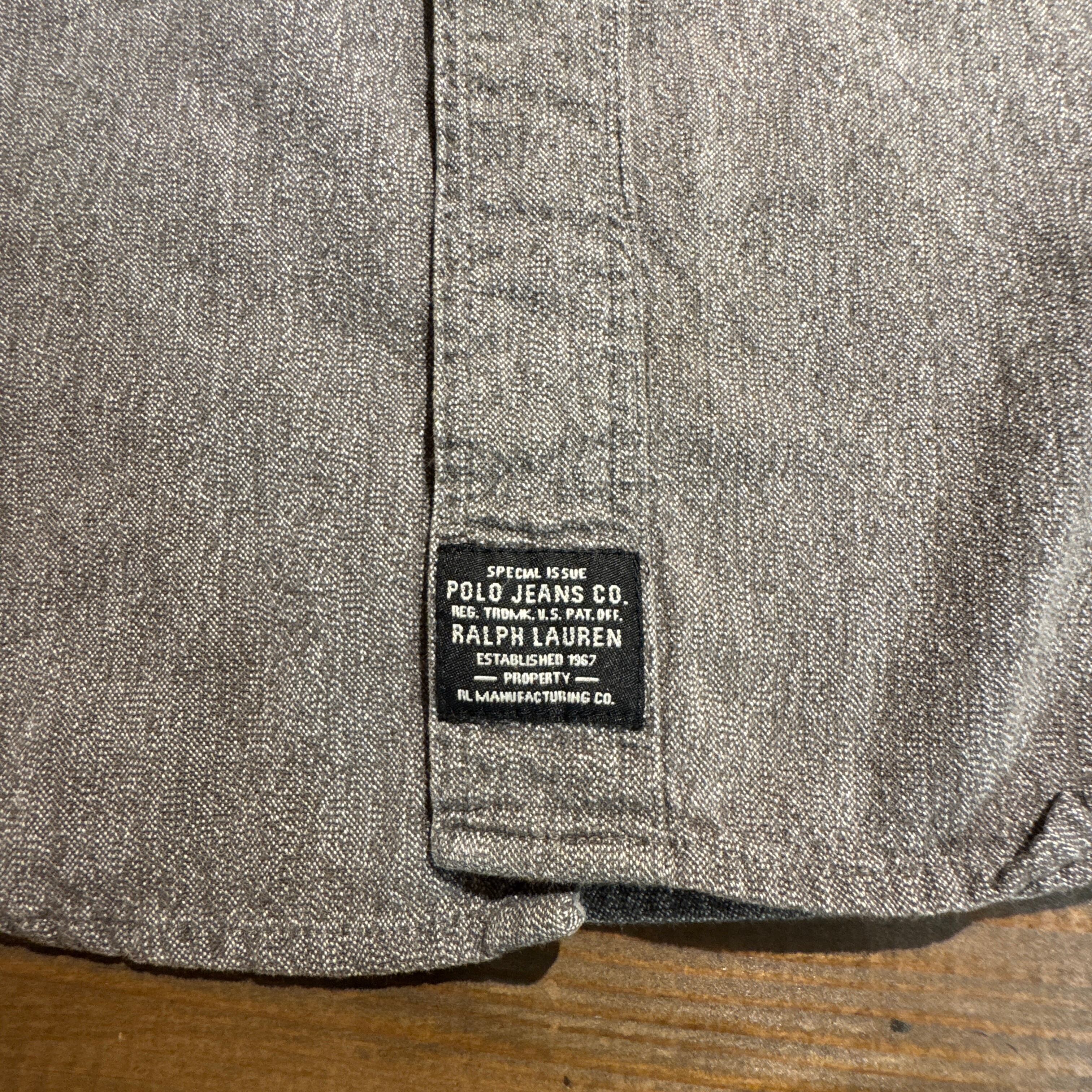 1990's~ POLO JEANS LONG SLEEVE BLACK CHAMBRAY SHIRT SUPER BIG SIZE【サイズ表記 XXL】 / 1990年代~ ポロ ジーンズ 長袖 ブラックシャンブレー シャツ 【着画有り】