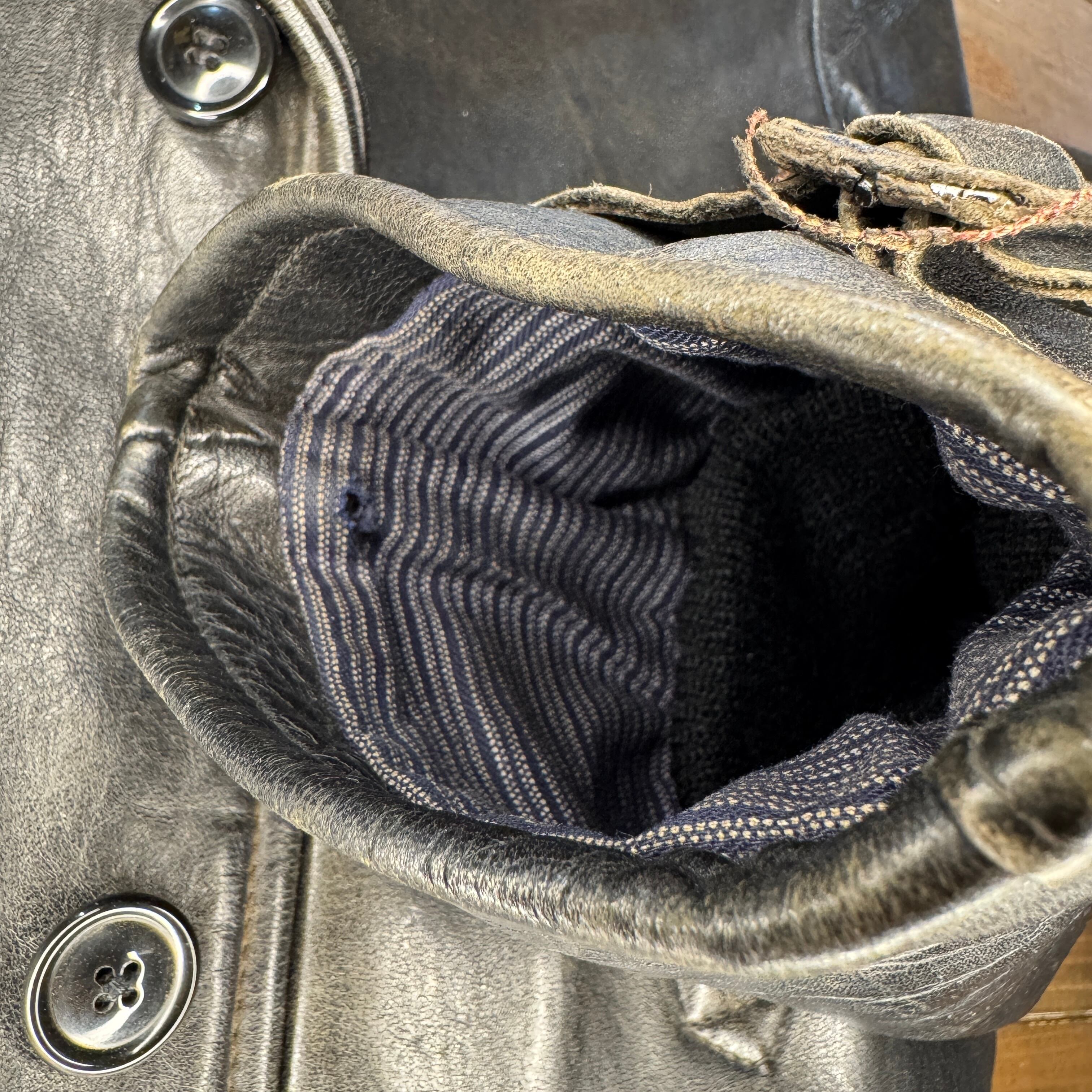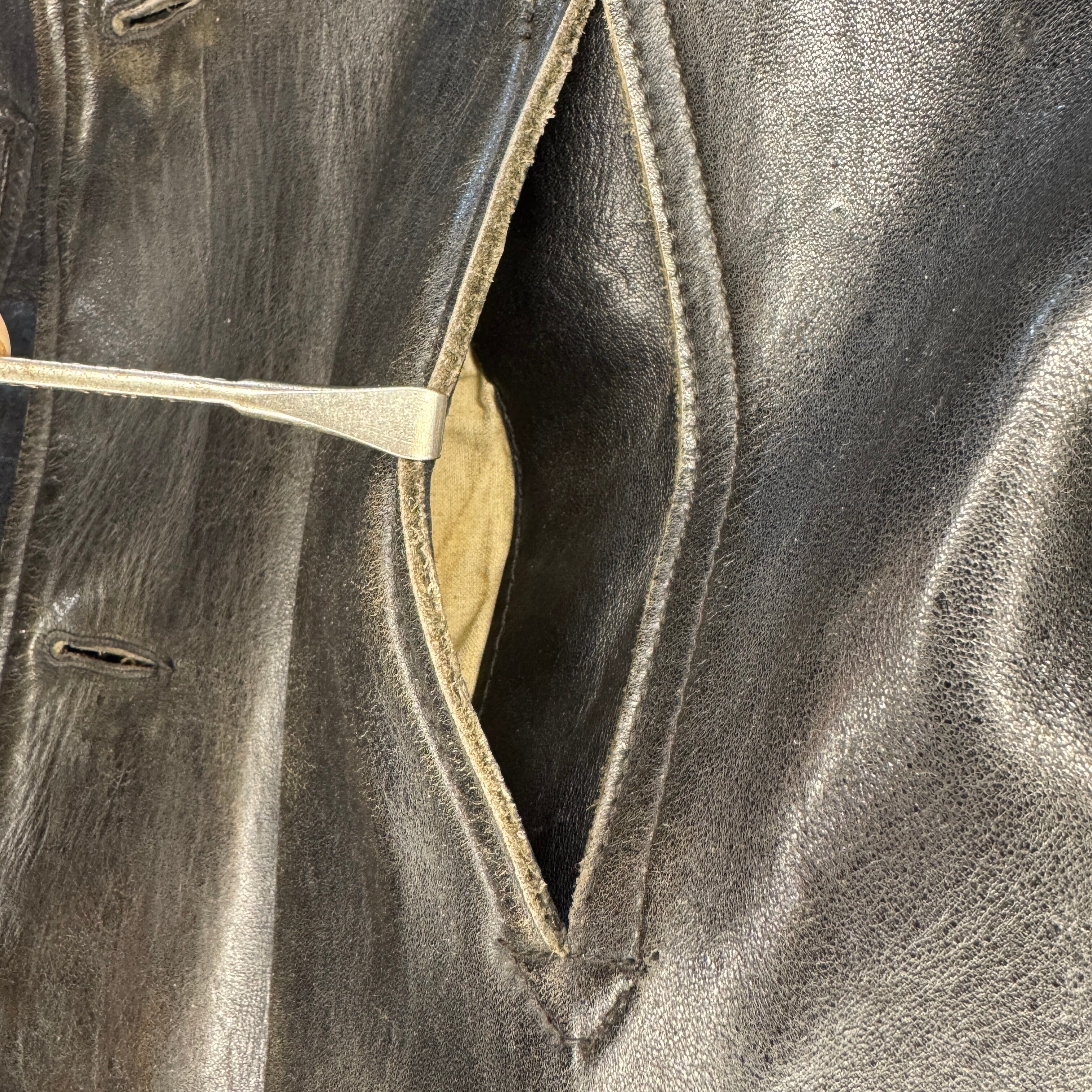 4つポケのカーコートスタイルで前身頃は一枚革となり、スラッシュポケットはレザー部分が切りっぱなしになった珍しい仕様。