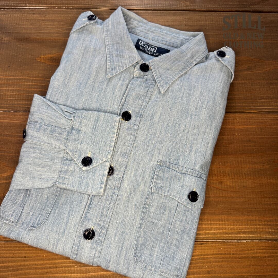 1990's~ POLO by Ralph Lauren LONG SLEEVE PULLOVER CHAMBRAY SHIRT 【サイズ表記 L】 / 1990年代 ポロ ラルフローレン 長袖 プルオーバー シャンブレーシャツ