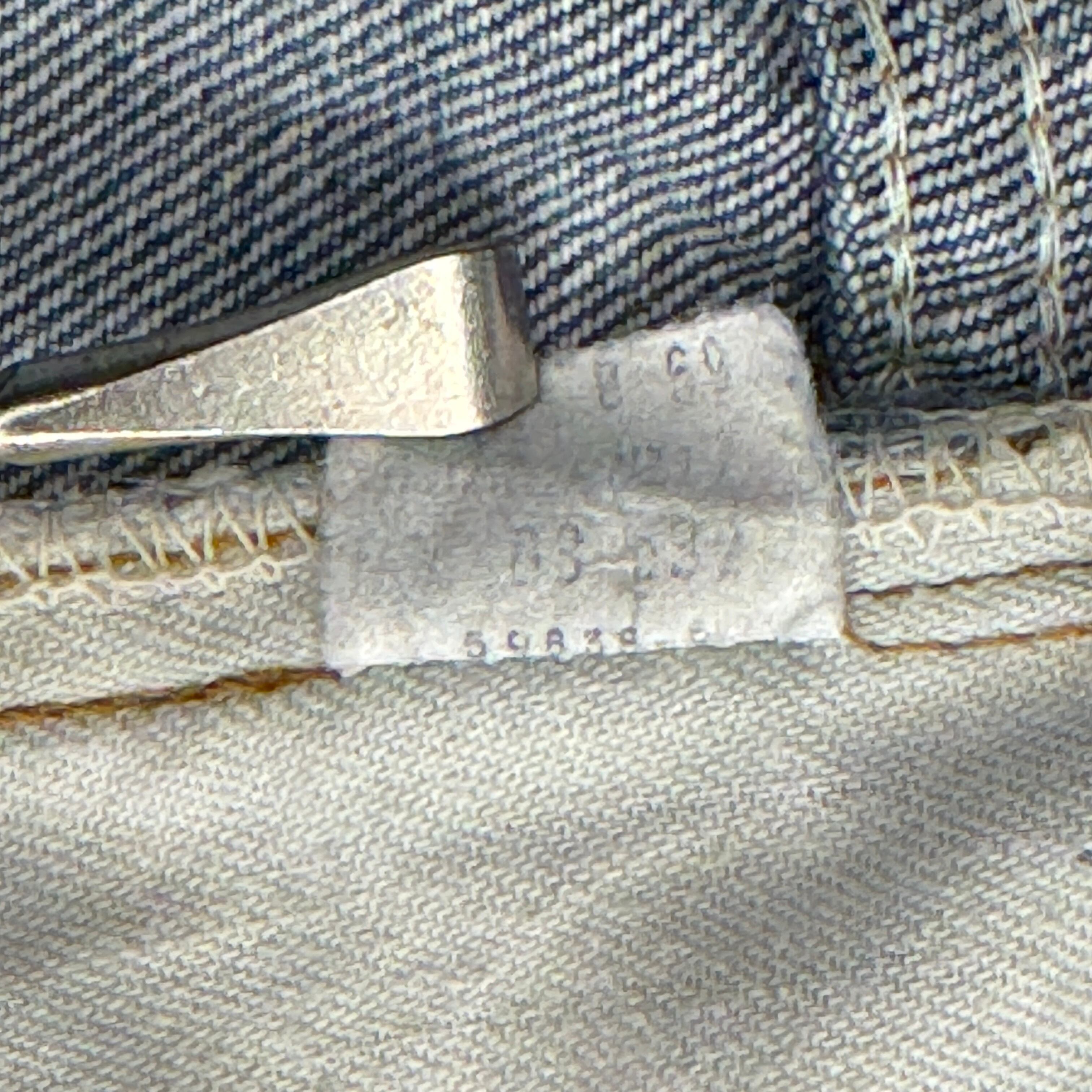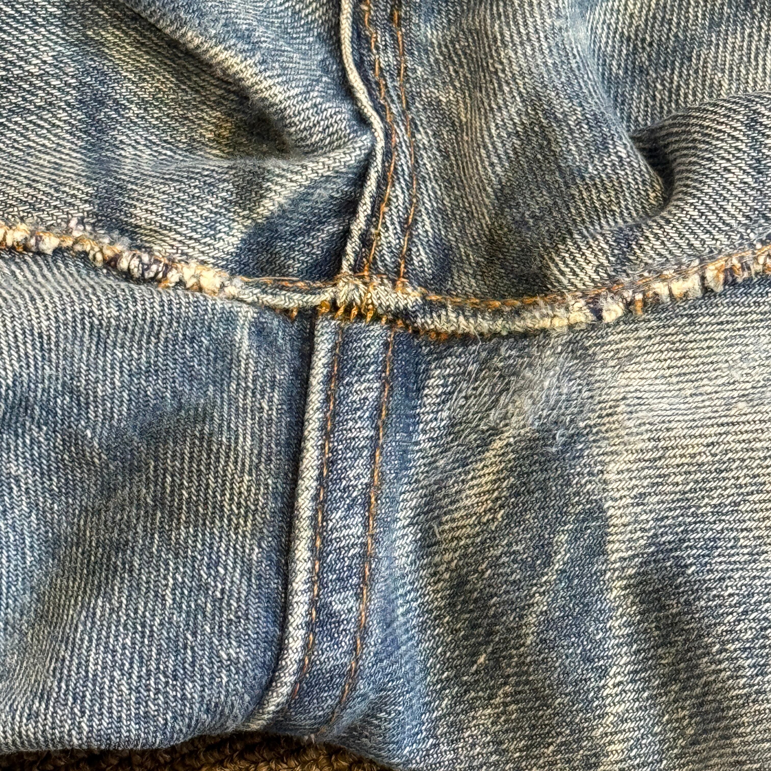 フロントジッパー付近にリペア、股部分にリペア、両裾上付近にリペア有り。