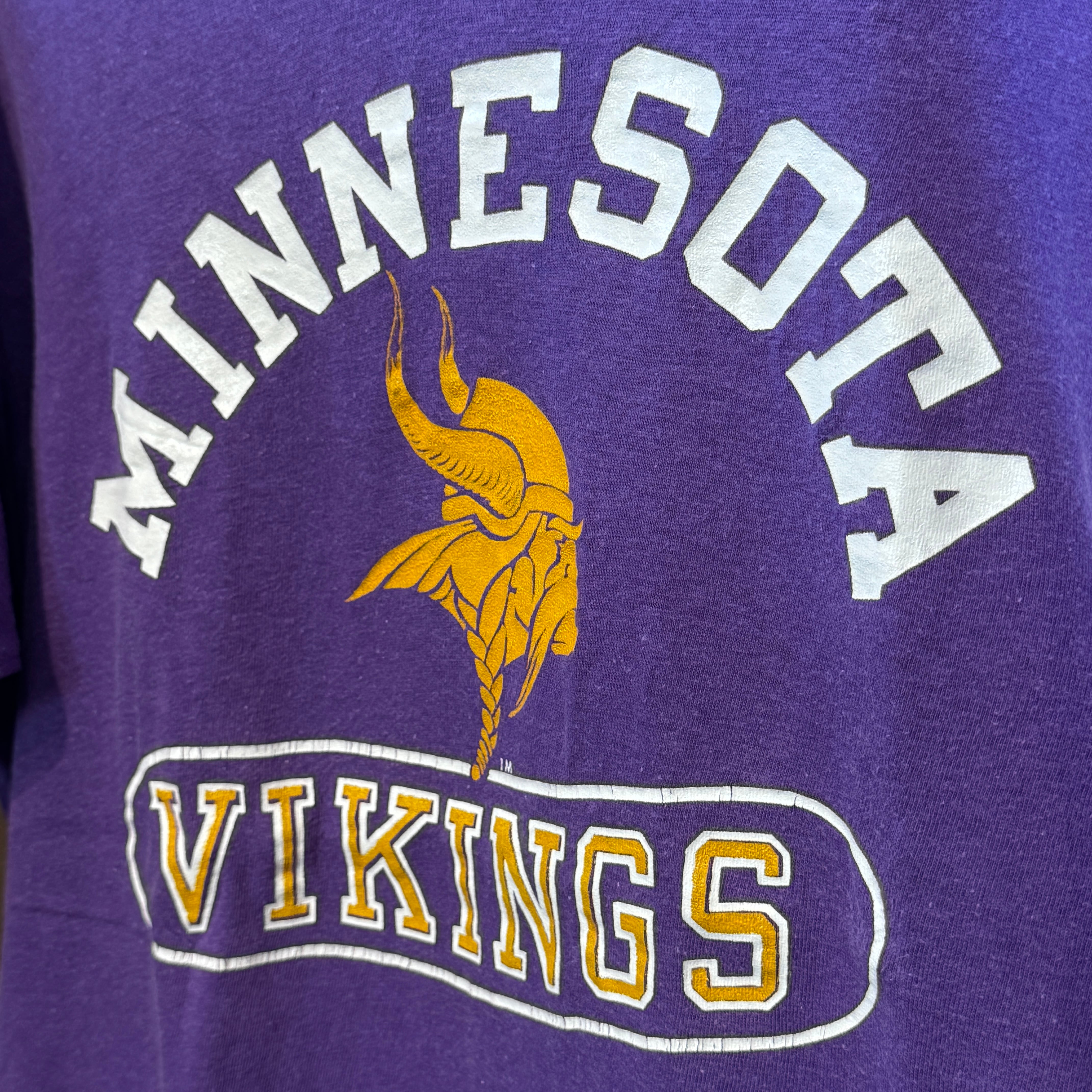 1970's〜80's VINTAGE CHAMPION MINNESOTA VIKINGS T-SHIRT 【サイズ表記 XL】/ 70年~80年代 ヴィンテージ チャンピオン バータグ ミネソタ バイキングス Tシャツ 【着画有り】