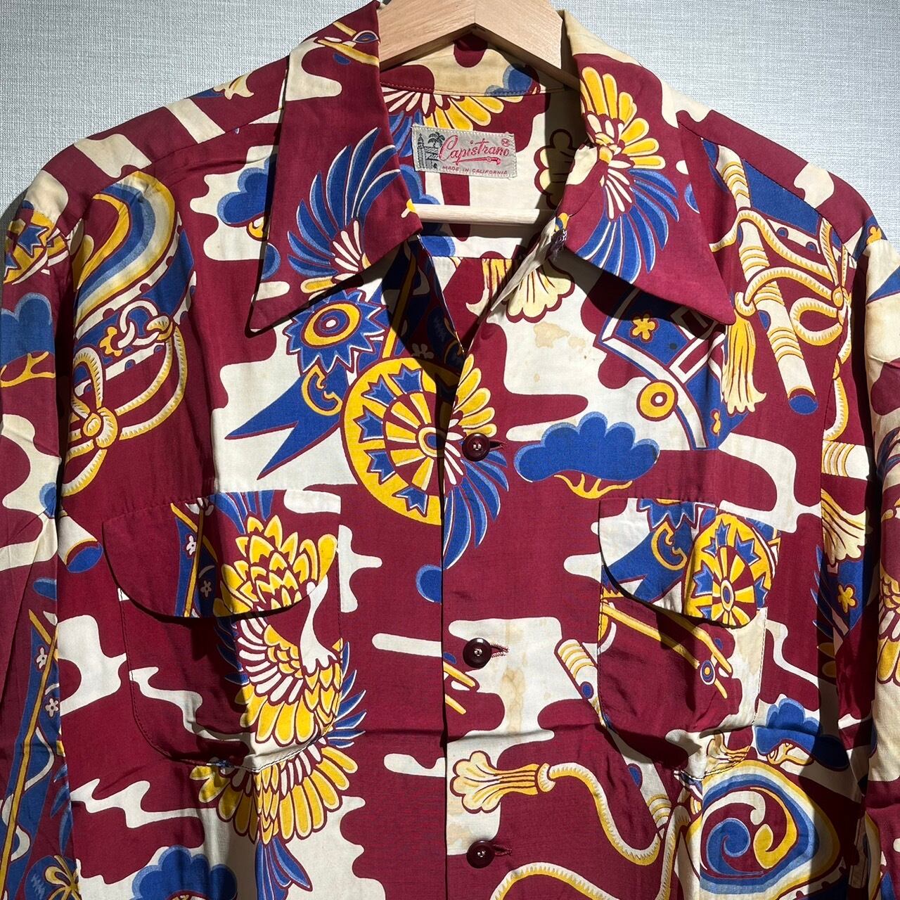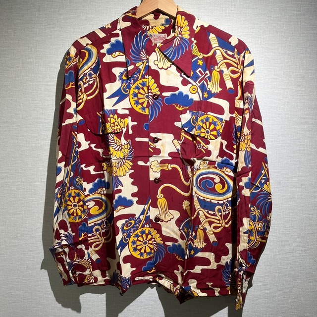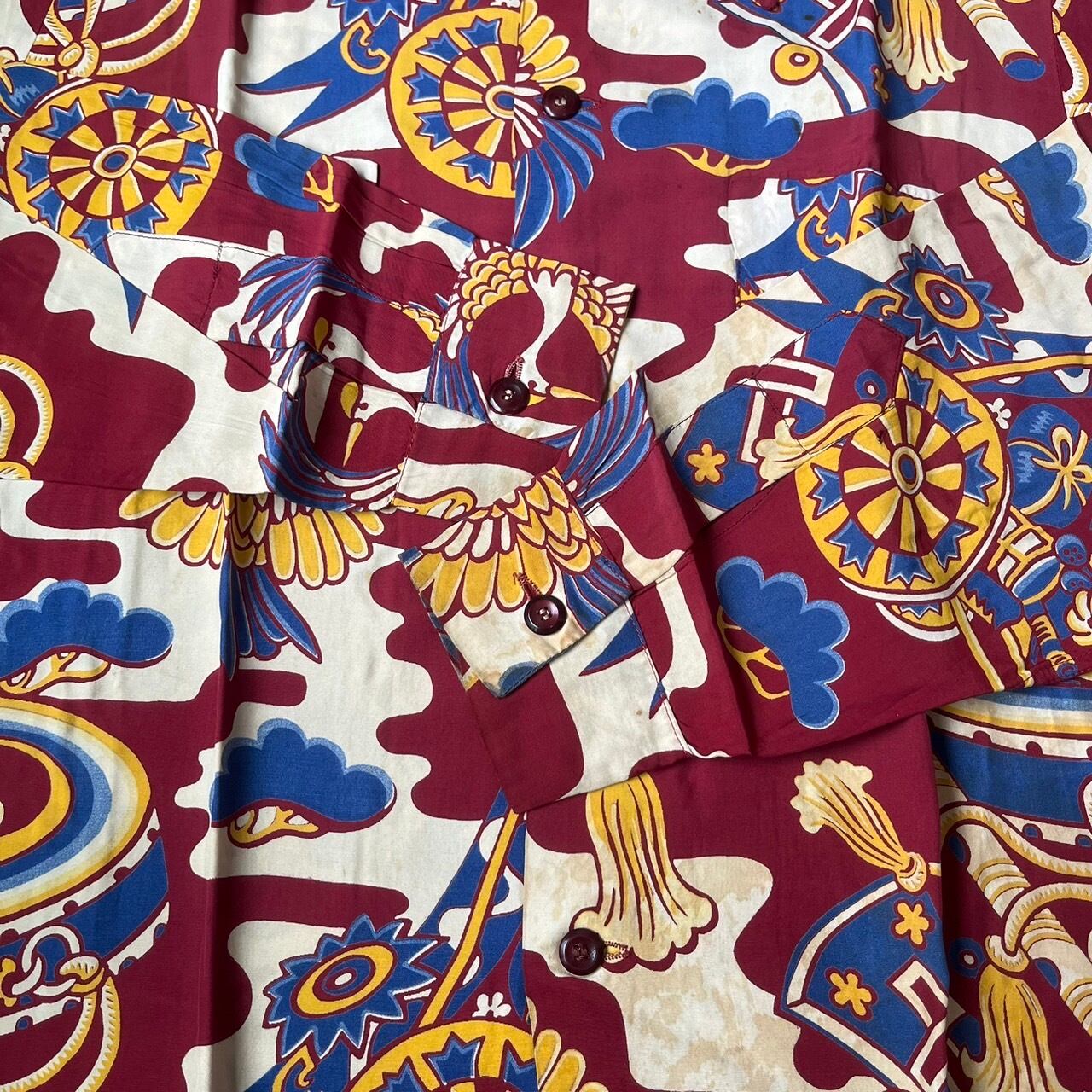1950's和柄の長袖ハワイアンシャツです。
